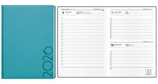 • neobyčejný diář s lesklým povrchem ze strukturovaného materiálu s ražbou roku