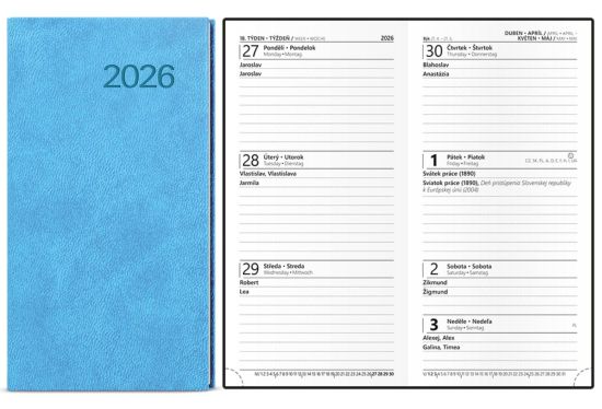 Diář Jakub, týdenní, kapesní, Vivella, světlý modrý 2026