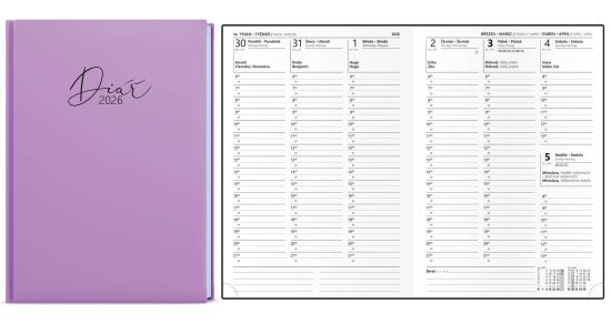 Diář Oskar Pastel, týdenní, A5, lamino, fialový 2026