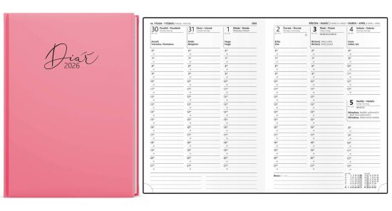 Diář Oskar Pastel, týdenní, A5, lamino, růžový 2026