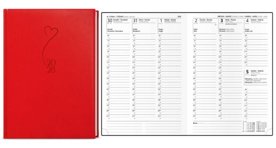 Diář Oskar, týdenní, A5, Vivella s ražbou, Srdce 2026