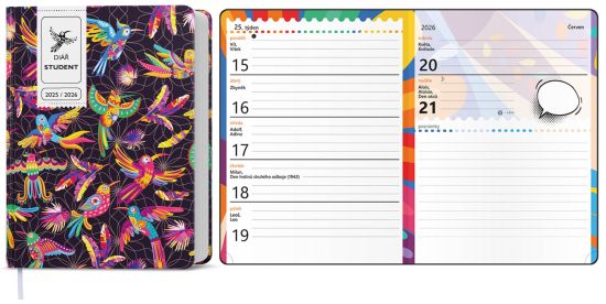Diář Student V8, týdenní, kapesní, lamino, Papoušci 2025/26